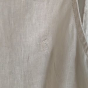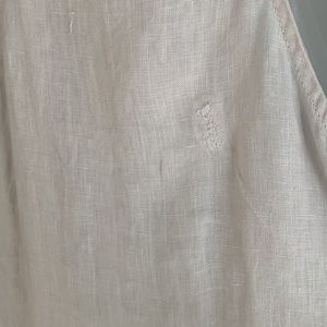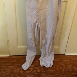 Lightweight linen overalls. Small tear in the back. Button straps. I think may have been put on backwards. Size 3( which I think is equivalent to a large)