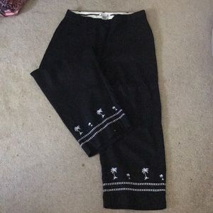 Jillian Jones black linen pants- with with embroidered palm trees on bottom of legs. Size 12. Smoke free home
