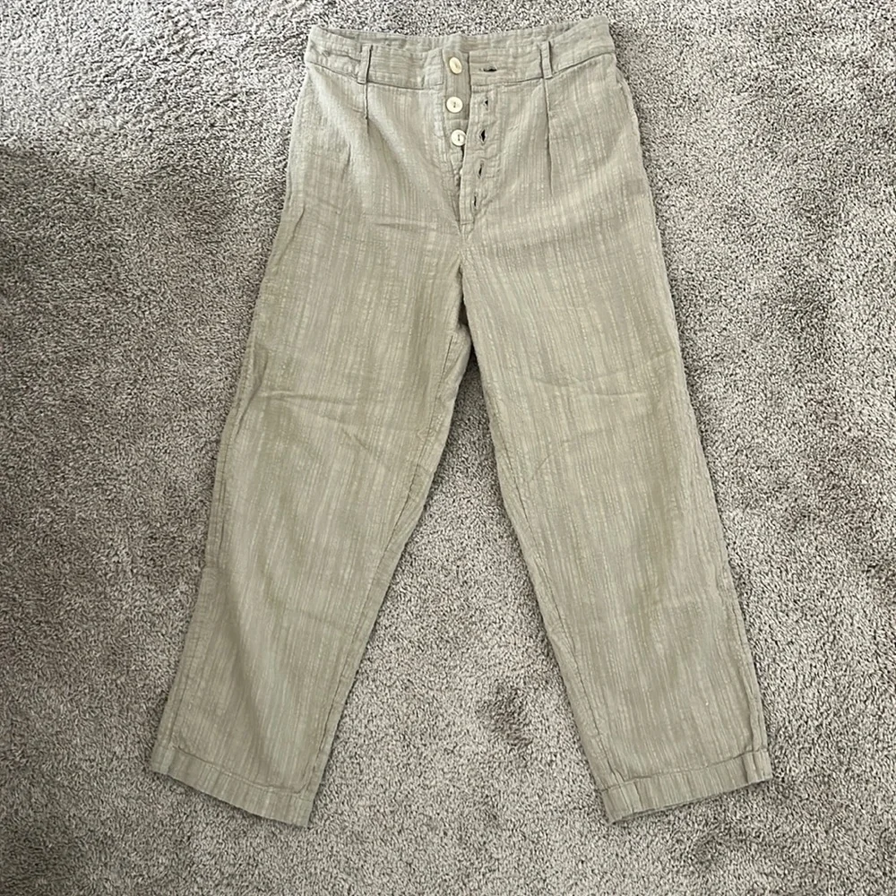 Beautiful sage green, cropped linen pants from urban outfitters. Super beathable and lightweight, and have the CUTEST buttons. Sadly they don’t fit me anymore but they were a summer staple for me!