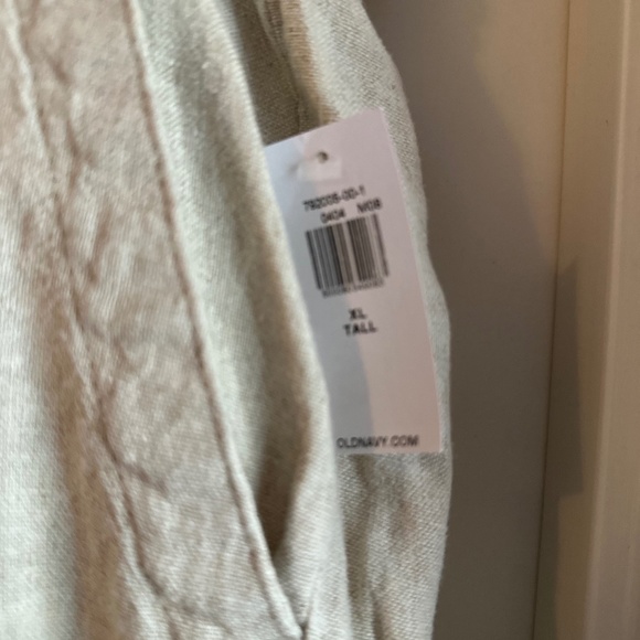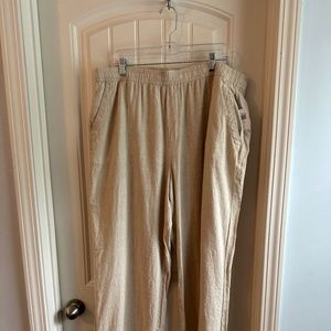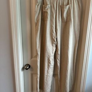Tan linen pants, elastic waist