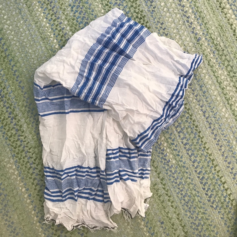 White, blue striped linen scarf