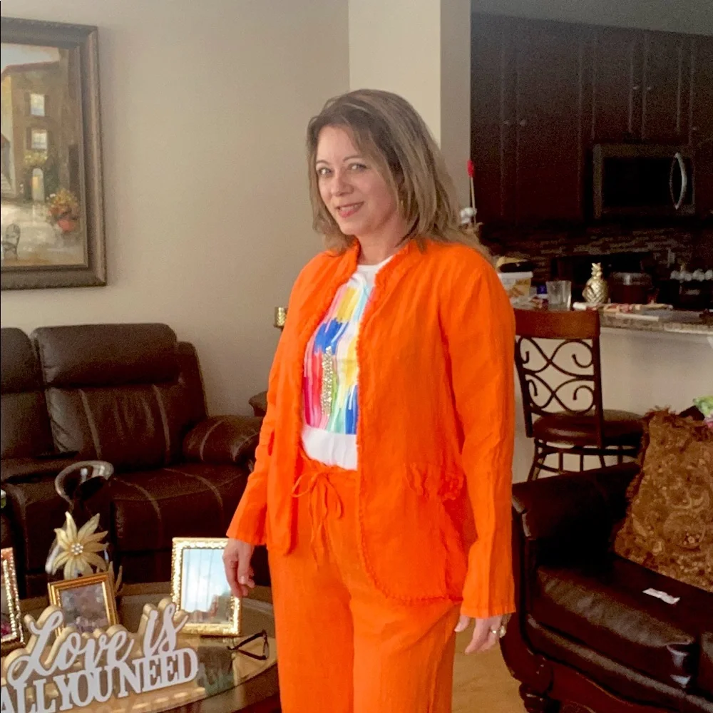 Linen set color orange . Perfect to any occasion . Feel free to ask . Run size S to L