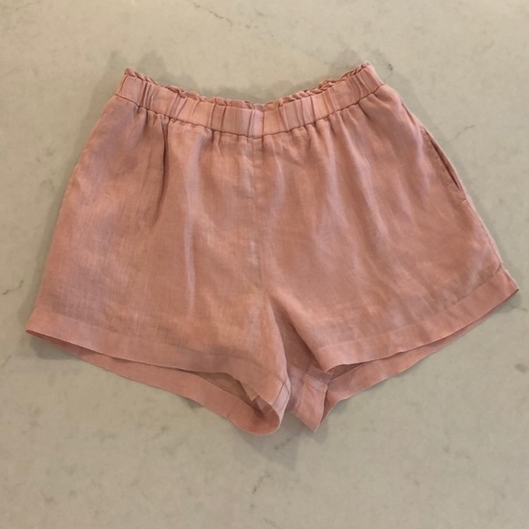 Dusty rose colored linen shorts. Very loose and nice to wear for any occasion! Can be easily dressed up with a button up and heels, or dressed down with a white tee shirt and some slip one!!