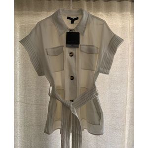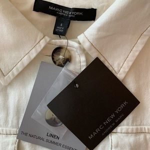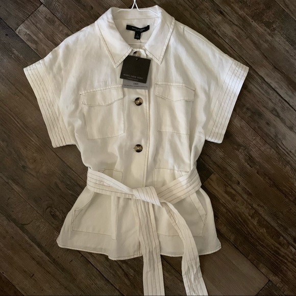 Short sleeve button up linen top with tie detail. New with tags. Marc New York size small.