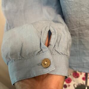 Unbranded Linen top square neck bishop sleeve button cuff baby blue natural fibers