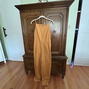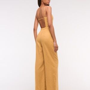 Flattering jumpsuit in our soft linen-blend fabric, featuring an apron neckline, open-back detail with an adjustable back strap and a slim straight-leg pant. Imported.