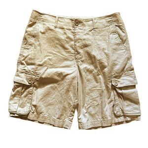 Linen Shorts Men's Khaki Cargo Zip Button Pockets