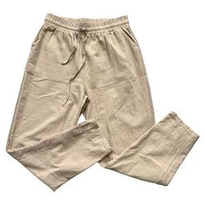 Linen and Cotton Joggers Tan with Lace detail on sides Size Medium