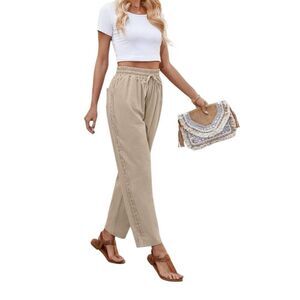 Puimentiua Women Linen Pants with Lace Side Size Medium