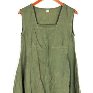 Lovely Linenbee dress. Lagenlook style. 36” bust. 42” length. When in doubt, size down. This has no stretch and fits a little small IMO. I usually wear a 36” and I think this would better fit someone who usually wears a 34”.