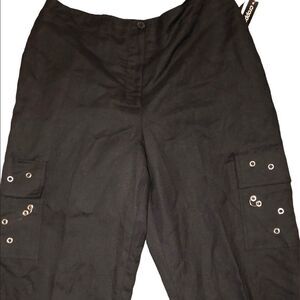 Larry Levine sport linen cropped black pants. Wide leg, silver chunky button accents. Button zip front closure. Fully lined. NWT