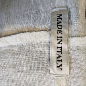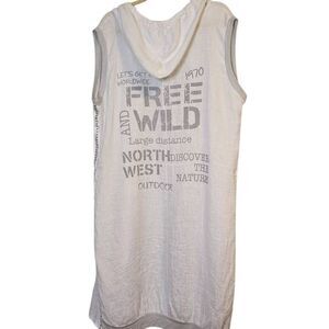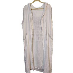 Linen sleeveless long cardigan, white with silver trim. XL.