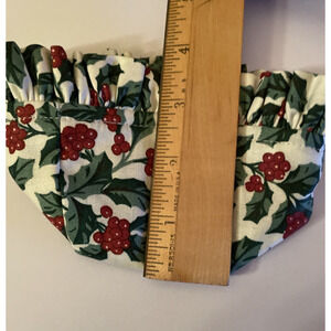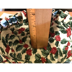Longaberger 1994 Christmas Basket Liner - Traditional Holly Small 2.75"+ 1.25" ruffle H x 2.75 " W , This Longaberger 1994 Fabric Liner with a Traditional Holly design is a small, round fabric perfect for adding a festive touch to your holiday decor. The multicolor holly pattern and traditional style make it a charming addition to any room during the Christmas season.
