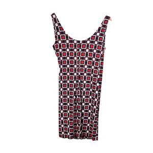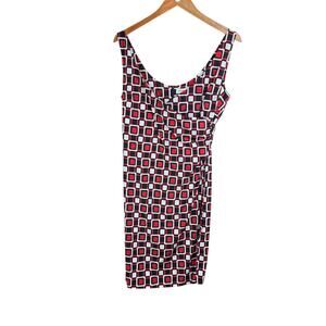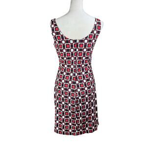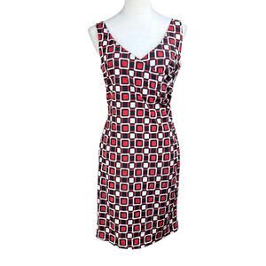Ling Shan Li Vintage Red White Black Geometric Print Silk Blend Sheath Dress