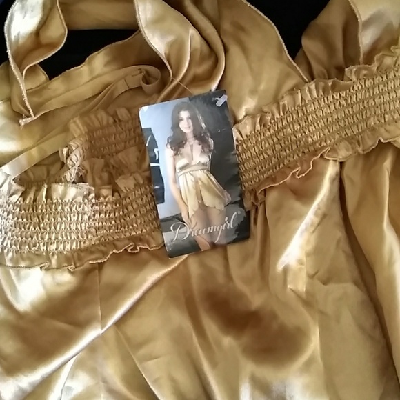 It's silk type very comfy to sleep on it comes with a gold thong
