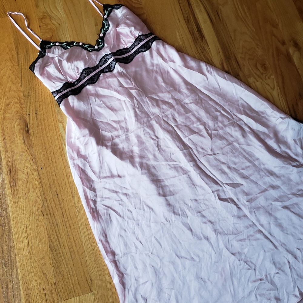 Like new pink lingerie with black lace 20 inches bust 39 inches in length