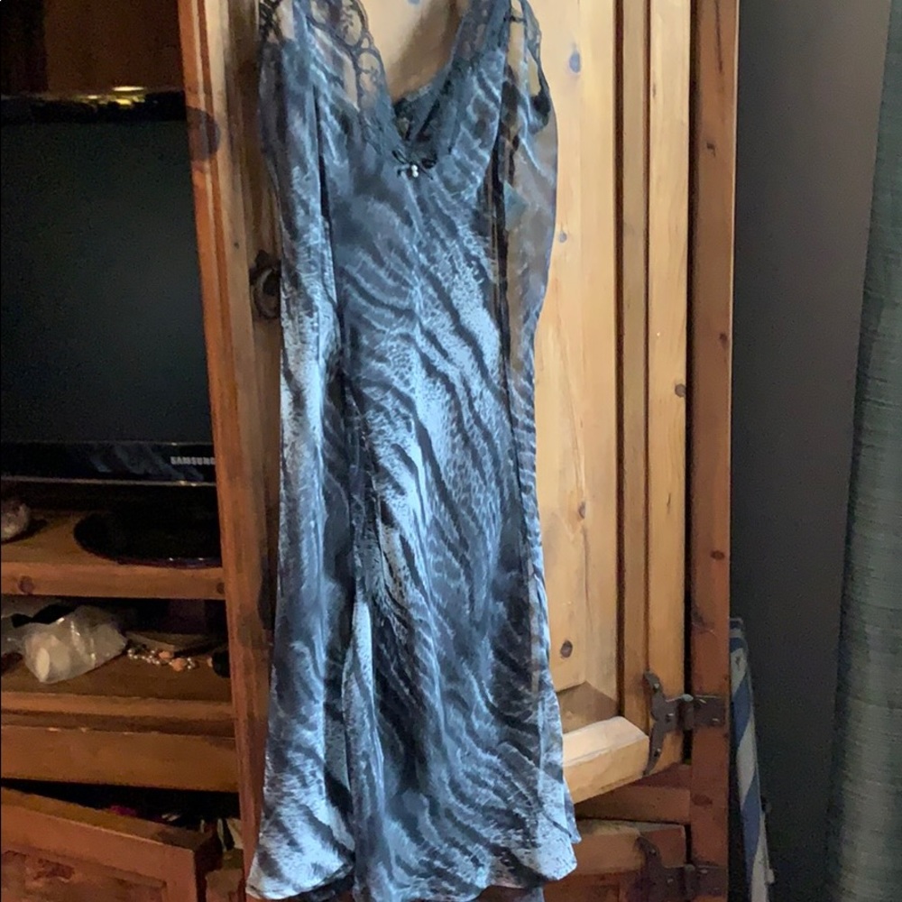 Sexy nightgown, camisole or just loungewear. Compliments a woman’s curves. Beautiful shear and made for pleasure. Adjustable straps and flowing right above the knee.