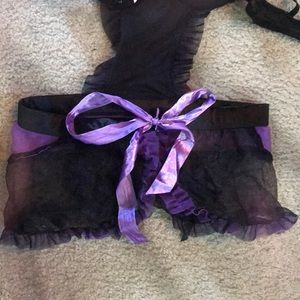 One piece lingerie... bottom is a sheer skirt that ties in the back with a satin bow