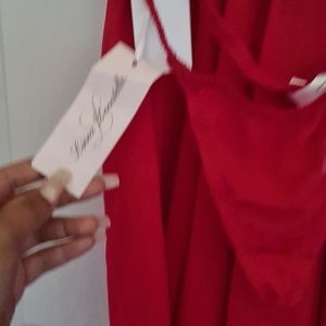 Sheer red with black lace