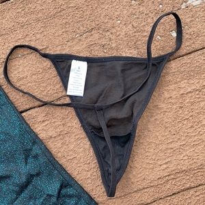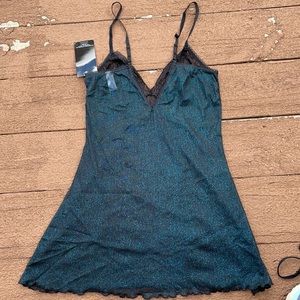 Black sheer with teal sparkle. Size S.
