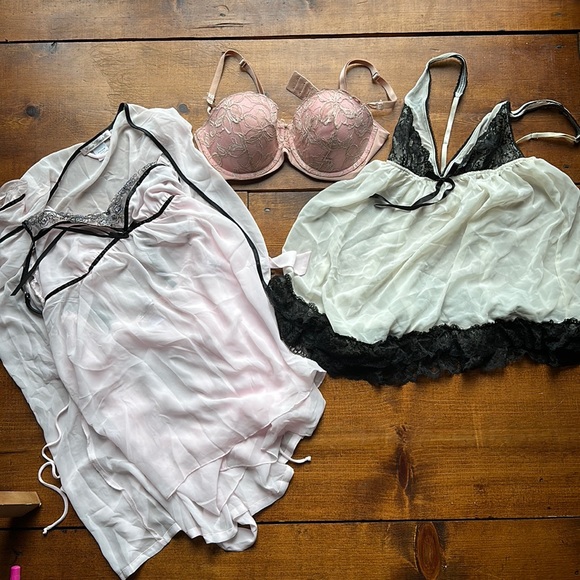 Victoria secret size small. Bra 36c. Linea Donatella night gown size medium with robe.
