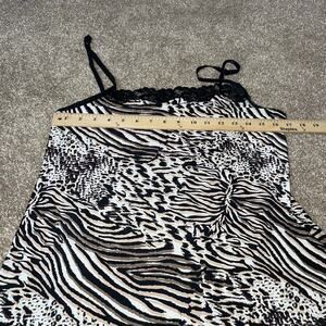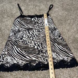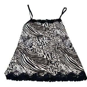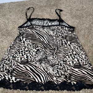 Lingerie slip dress top tunic zebra striped satin feel lace trim black/tan SZ L