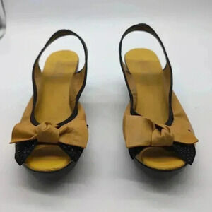 Lingjili Yellow Slingback Platforms sz 6.5 bow toe