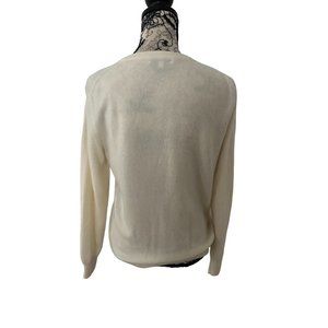 Elegant cream sweater featuring delicate blue embroidery - “Give A Damn”. Perfect for a stylish and cozy look.