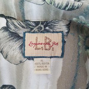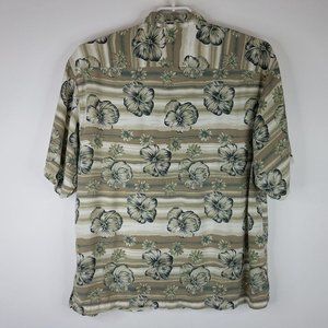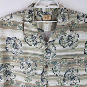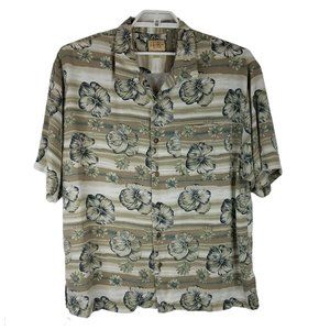 Linguine and Bob Mens Hawaiian Shirt Tan Blue Green XL Floral Button Up Beach