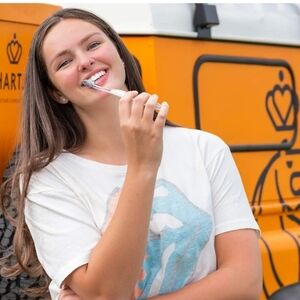 Linhart tooth whitener gel in a sleek white tube. Perfect for a brighter smile.