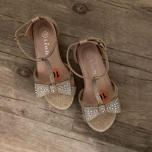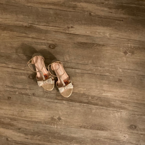 Color Gold with jewels and Velcro’s top also, 1 inch heal