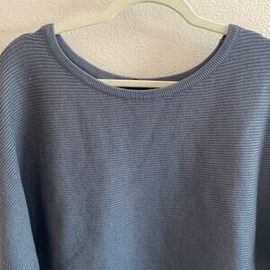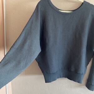 Holy cozy this sweater is so soft . If comfort is your thing you need to buy this asap . Gorgeous shade of blue .