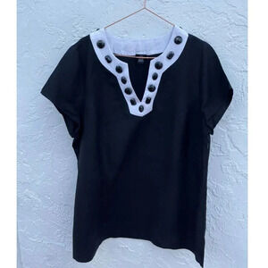 Link Womens Unique Linen and Rayon Fabric With Gem Stones Top Black Sz 18 to 20