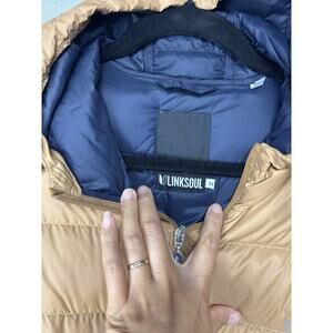 LinkSoul Men’s Kirkwall Golf Hooded Down Gold Brown Puffer Jacket Coat Active M