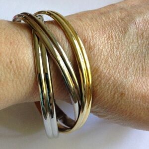 Interlinking Set of 3 bangles that are interconnected omnibus style. Super cute and you'll never lose one, gold and silver tones interlinking bangles🐝🌸🐝