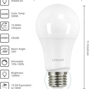 ✔ MONEY SAVING & LONG LASTING: Linkind A19 LED light bulbs can last for at least 13 years based on 3hrs/day of use. It provides up to 85% energy saving by replacing 100W with 15.5W. Replace your old incandescent bulbs for a brighter and more energy friendly home. NOTE: The 15.5W bulbs are NOT suitable for use in enclosed luminaries/light fixtures.