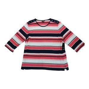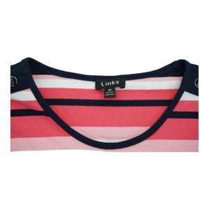 Links 1x Stripped Pull Over criss cross Short Sleeves NWT