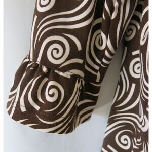 Links Boho Swirl Bell Sleeve Top Shirt Size M Women Buttons Retro Brown White