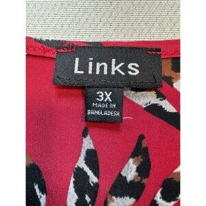 Links Womens Tunic Blouse Top Plus Size 3X Red Animal Print 3/4 Sleeves Retro