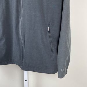 Men's Linksoul gray and black color block hooded golf jacket. Size Large. 67% polyester, 25% cotton, 8% spandex. Full zip closure. Zippered pockets. Excellent condition! Measurements: 24" armpit to armpit. 29" length.