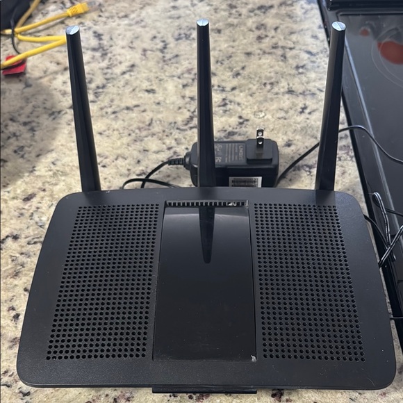 Enhance your network with this sleek black wireless router Model EA7450. Designed for optimal performance and reliability.
