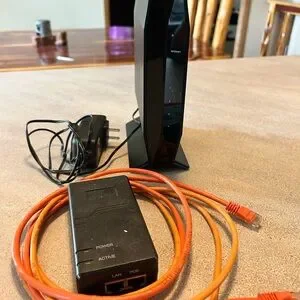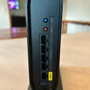 Linksys router in good working condition. Only selling because we switched to Starlink when we moved. Includes an orange Ethernet cable for quick setup.