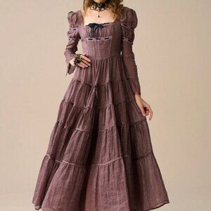 This prairie linen dress will make you look just as cute on any day of the week. It's oversized and comfortable yet flattering and feminine - it checks all the right boxes! Flutter with each step - you'll feel like you've stepped right out of a fairytale. A lovely A-line silhouette that twirls beautifully! The lace-up trim adds a touch of classy femininity to the piece - we’re in love with this vintage detail.