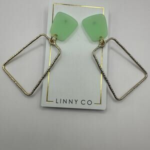 Linny Kaelin Earring Pierced Mint Dangle hoop Green Gold Modern Contemporary NWT