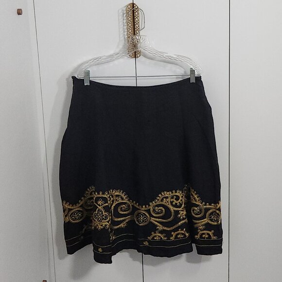 Lino U.S.A. Skirt Womens Size XL Black embroidered Lined Knee Length Flowy