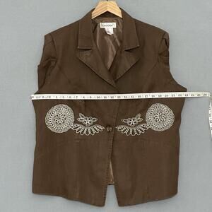 Lino USA Womens Top Plus 1X Brown 100% Linen 2 Piece Embroidered Classic Clasual