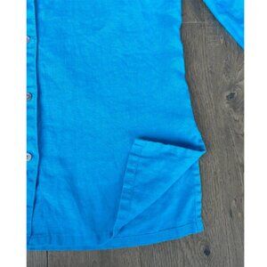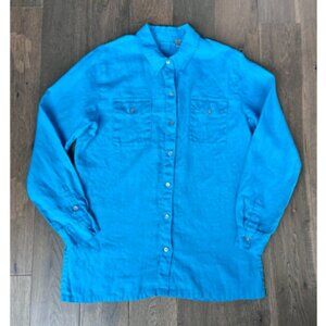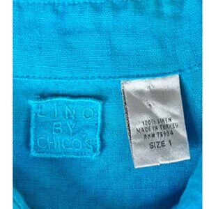 Lino by Chico's 100% Linen Button Front Blouse Size 1/M Lagoon Blue Lagenlook
