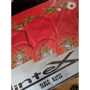 Lintex Holiday Napkin Placemat Coaster Set Service for 4 Red Bells Holly NOS Vtg