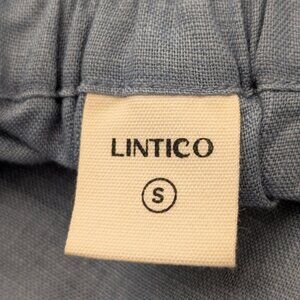 Lintico Womens Sz S Blue Marina Pockets Elastic Waist Lagenlook 100% Linen Skirt