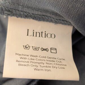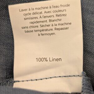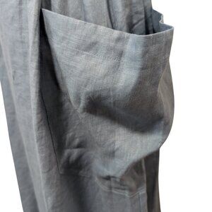 Good condition, minor signs of wear, gently used, no rips, holes or tears, pretty dusty blue, 100% linen, large patch pockets, elastic waist